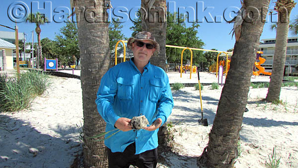Professor Clark, working as a volunteer rather than in his UF/IFAS professorial capacity, was planting “panic grass” to add to the sand dunes of Cedar Key Beach, which is next to the Gulf of Mexico and adjacent to the city park of Cedar Key.